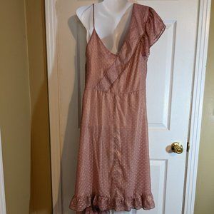 ASOS Iridescent Rose w/Gold Shimmer Pink Polkadot Asymmetrical Dress - size 16