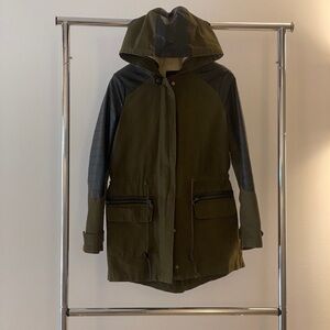 Canvas and leather (likely faux leather / pleather) utility jacket.