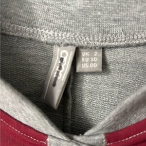 Lightweight, Buttondown jacket from asos in grey with white and burgundy stripes on front. Size XS/00, measures 20.5 inches shoulder to hem, 15.5 inches pit to pit. Feel free to ask questions!