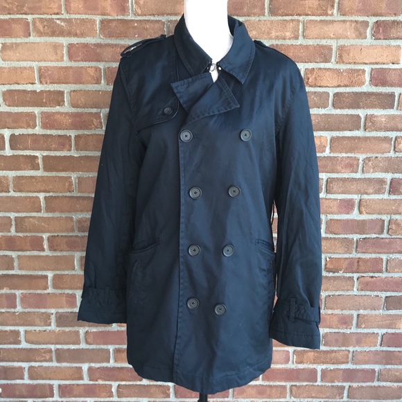 ASOS Jacket with Button Front Size Small Navy Blue. Missing belt but otherwise great condition. Lined