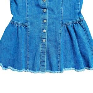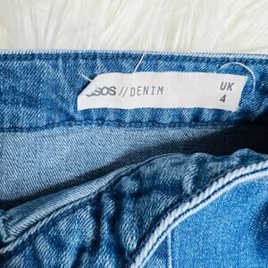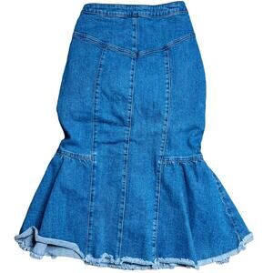 ASOS Jean Skirt 0 XS Womens Denim Flounce Button Front Midi Peplum Frayed Hem