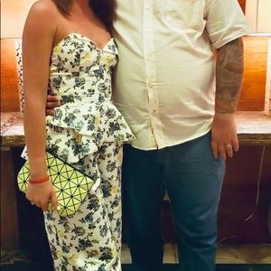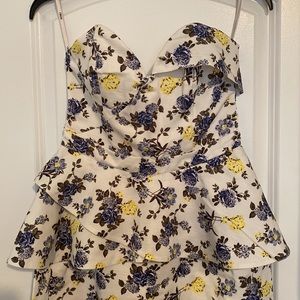 Cute and fun strapless jumpsuit. Wide leg culottes, corset top. Worn couple of times