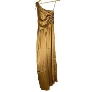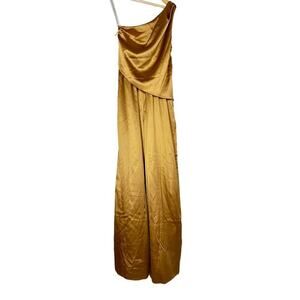 ASOS Design Jumpsuit Satin Drape One Shoulder Gold Hardware Camel Brown NWT 0