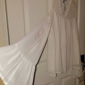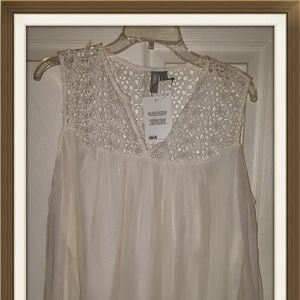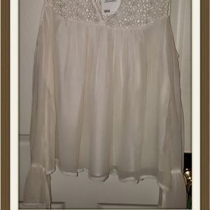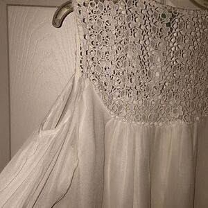 This is the epitome of feminine peasant boho at it's best! Done in ivory, with flowing wide bell sleeves, makes this piece so whimsical & romantic. Tassels hang from the neckline to be tied or left to wild abandon. Size 10. NWT.