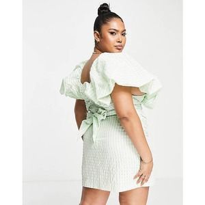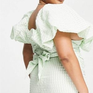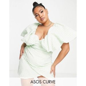 ASOS LUXE Curve Bubble Bardot Wrap Mini Dress in Green Gingham