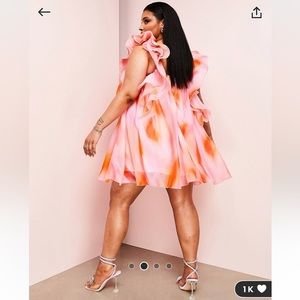 ASOS LUXE Curve ruffle shoulder cupped babydoll mini dress in pink print