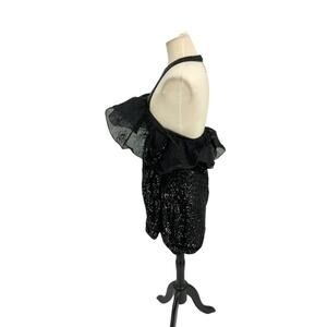 ASOS LUXE Halter Neck wire lace organza shoulder mini dress in black sequin; Size 8; From Nordstrom; A round of applause for the dress.