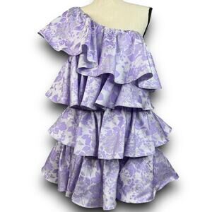 ASOS LUXE Ruffle One Shoulder Jacquard Mini Dress Purple Silver 6 Runs Small