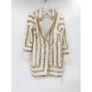ASOS LUXE Stripe Embellished Tux Mini Dress White Gold US 8 NWT
