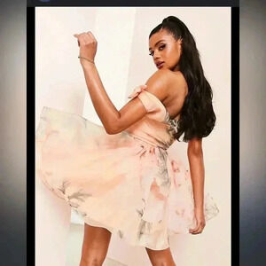 ASOS LUXE bow prom selkie skirt mini sun dress in floral off shoulder cutouts