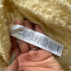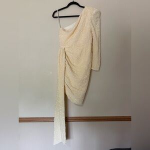 ASOS LUXE one shoulder asymmetric draped mini dress in yellow sequin