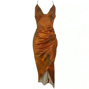 ASOS LUXE seamed corset satin midi dress in brown swirl print