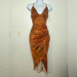 ASOS LUXE seamed corset satin midi dress in brown swirl print