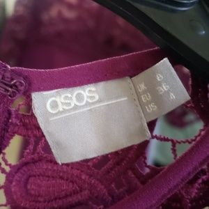 Beautiful ASOS lace scuba dress, worn once in perfect condition. No flaws, beautiful wine color. Very flattering fit, flirty dress! Also available in Lilac.
