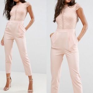 ASOS Lace Top Jumpsuit- Pink