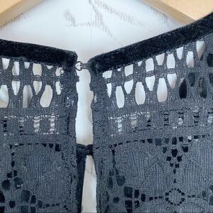 ASOS Lace and Velvet Open Front Smocked Top Black