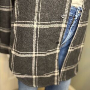 Here is a Ladies ASOS Design Flannel Shirt in a size small. The shirt is a button front with long sleeves and a collar. The flannel is black and white in color. Super nice and in great condition.