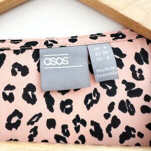 ASOS Leopard Animal Print Blouse Flowy Blush Pink Peach Dressy Going Out Top