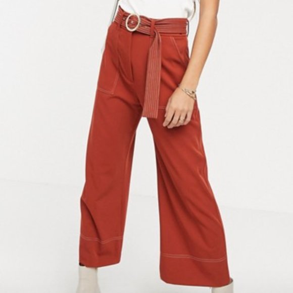 By far one of my favorite pants! They are sold out on ASOS. I have another pair of these and this is an extra pair I ordered. They have not been taken out of the package at all and are in perfect condition, untouched. They go with quite literally anything and are super flattering. They have a tighter fit around the waist and butt and then flare out.