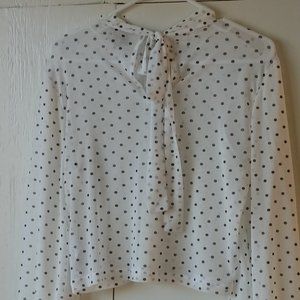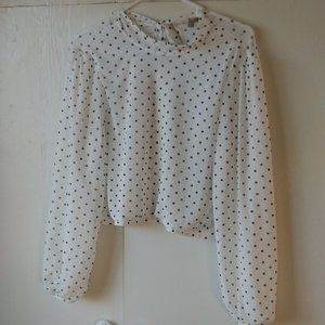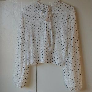 ASOS Long Sleeve Cropped White w/Black Polka Dots Top
