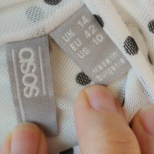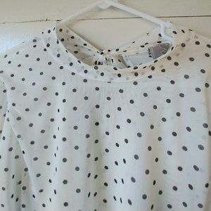 ASOS Long Sleeve Cropped White w/Black Polka Dots Top SZ 10