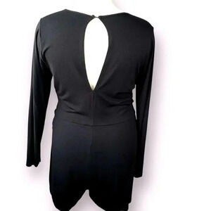 ASOS Long Sleeves Stretchy Knit Romper Drapey Sash Back Keyhole Size 14 Black