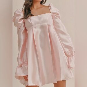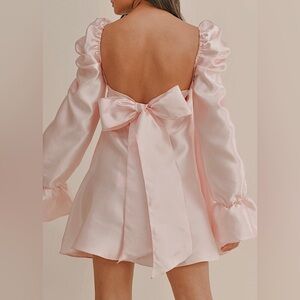 ASOS Luxe Satin Pink Baby Doll Mini Dress with Open Back and Bow