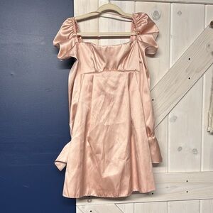 ASOS Luxe Satin Pink Baby Doll Mini Dress With Open Back and Bow Size US 4