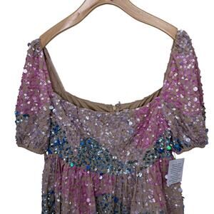 ASOS MAYA DELUXE Puff Sleeve Sequin Mini dress Eras Tour in Pink Blue 4