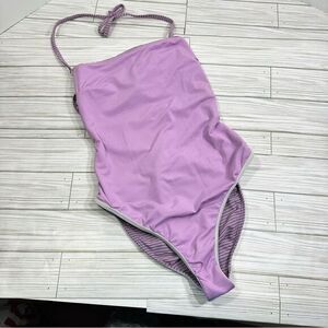 ASOS METALLIC PINSTRIPE STRAPPY LACE UP BACK ONE PIECE SWIMSUIT 4