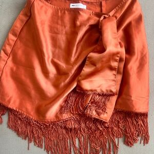 SATIN WRAP MINI SKIRT WITH FRINGE- LIKE NEW WORN ONCE!
