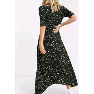 ASOS Maternity Dress Ditzy Floral Long V Tie Front 8 Black Yellow