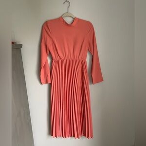 ASOS Maternity High Neck Pleated Long Sleeve Pink Midi Dress Women’s 4 NWOT