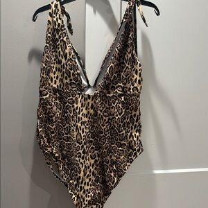Chic leopard print maternity swimsuit, perfect for playful adventures.