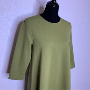ASOS Maternity green waffle knit dress. Pullover style with crew neckline. Waffle knit textured material. Midlength sleeves. Color is hard to photograph but most accurate in the close up picture of the material. Size 8. Excellent preowned conditon. Polyester elastane blend. Machine wash.