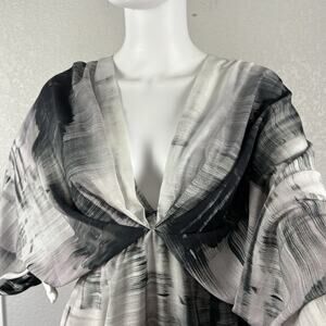 ASOS Maxi Dress Deep V-neck Batwing Sleeve Abstract Gray Black Lavender Size 10