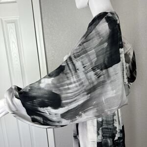 The ASOS Maxi Dress in Size 10 features a deep V-neck and batwing sleeve design, perfect for a creative and stylish look. The abstract gray color with black and lavender accents adds a touch of artsy flair to the dress, making it suitable for various occasions such as travel, parties, or casual outings. Made from polyester with a woven fabric type, this long dress is machine washable . Ideal for the summer, fall, or spring seasons, this dress exudes a bohemian and avant-garde style, making it a standout addition to any wardrobe.
