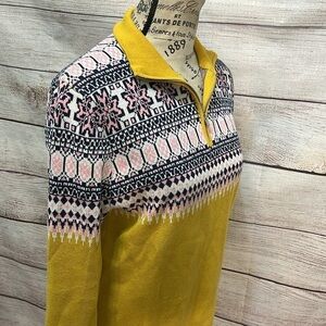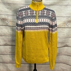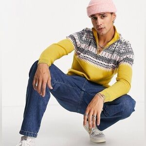 ASOS Men’s Sweater Quarter Zip Fair Isle Yoke Unisex Knit Size XS Yellow