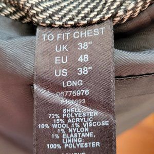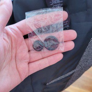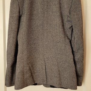 Blazer has been moderately used but has been well cared for, so it is in good condition. Up close, you can see that it is black and white stripes. With this texture, it looks like a heathered charcoal grey. Approximate Measurements: Shoulders 17.25" Chest 38" Length 29" Sleeve Length 27"