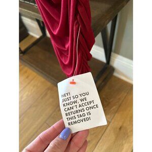 NOTE: Please note the stock photos of the dress are to show fit. Actual dress does NOT have pearl accents and is a deeper, burgundy shade