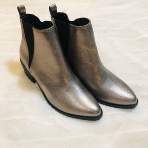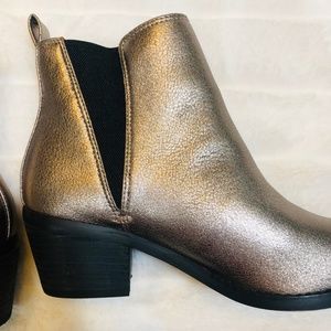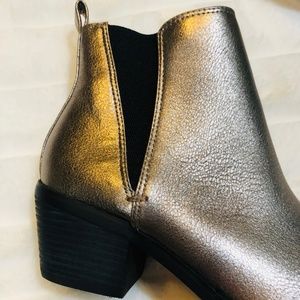 These are a brand new, only tried on pair of metallic/chrome ankle boots. They are in basically brand new condition. Pull on style with elastic ankle band. They are a UK size 4 and a US size 6. The perfect night out shoes!