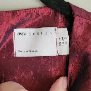 ASOS Metallic Bubble Puff Sleeve Taffeta Top Deep Red