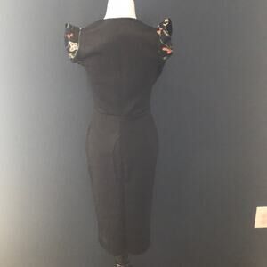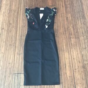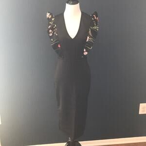 ASOS Club L embroidered scuba knit midi dress. Stretch scuba fabric, plunging neckline, grill trim with embroidery. 95% polyester, 5% elastane. Size US 14 but fits more like a size 4. Listed as size 4 as that most closely coincides with measurements.