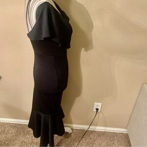 ASOS Midi Dress Sz 4 Black Evening Gown Mermaid Dress Goth Bodycon Ruffles Sexy