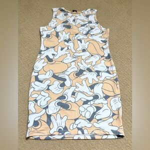 ASOS Mini Dress, size 8, fitted but fabric has a slight stretch, muted colors Mickey hands pattern. Machine wash. Perfect for casual wear.