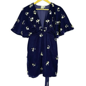 ASOS Mini Wrap Velvet Dress Blue US 6 Floral 3D Embellishments Baby Doll Dainty