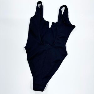 ASOS Missguided black ribbed high cut swim suit 32F. No underwire. Scoop back.
