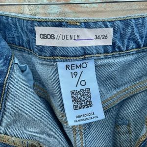 NWT Plus Curve Cropped “Mom” Jeans in Midwash Blues from ASOS Denim Remo (sustainable division), size 34 x 26. Medium wash non-stretch 100% cotton denim. Mid to high rise, Very cropped Capri length, good for petites. 5-pocket style, zip fly.