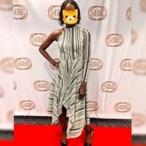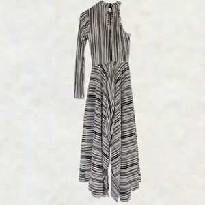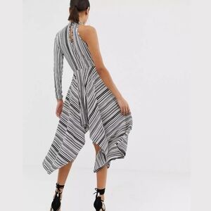 ASOS Monochrome Stripe One-Sleeve Handkerchief Hem Dress Black Gray Ivory- sz 4