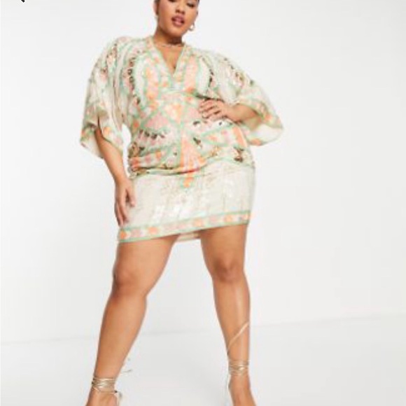 Chic ASOS dress with vibrant patterns. Features a mix of colors and a stylish design. Perfect for any occasion.